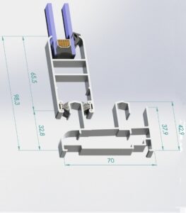 La corredera de serie «fria» mas grande de las series básicas de aluminio. Marco de 70 mm y hoja de 66 mm hasta 70 mm